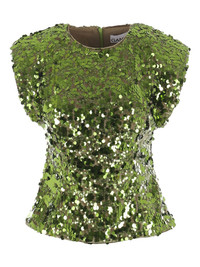 sequin-embellished T-shirt Highlights - Green - Rear zip fastening - Cut-out detailing - Short sleeves - Curved hem Imported Composition Fabric 100% Washing instructions Read Manufacturer Guidelines