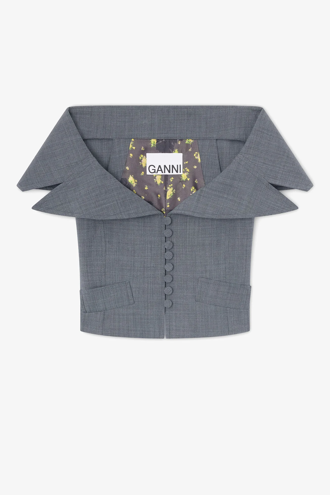 This vest features an off-shoulder design with a wide collar, button-front closure and double welt pockets. DETAILS - 50% RWS Wool, 50% Recycled Polyethylene Terephthalate Learn more about our materials - Lining composition: 100% Polyester - Off-shoulder - Wide collar - Button-front closure - Double welt pockets Made in: Turkey Product ID: A1020081 SIZE & FIT - Regular fit - Short - Assa is 5'9" and wears a size US 4