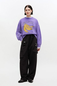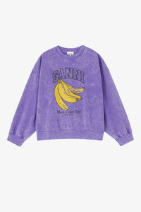 This sweatshirt features a round neckline, long sleeves, and a GANNI logo. The T-shirt has a print graphic and a 'Have a nice day! Please recycle' message. DETAILS - 100% Organic Cotton Learn more about our materials - Round neckline - Long sleeves - Ribbed edges - Print graphic - GANNI logo - 'Have a nice day! Please recycle' message Made in: Portugal Product ID: A1060028 SIZE & FIT - Relaxed fit - Lena is 5’9” and wears a size S - Tia is 5’10” and wears a size S
