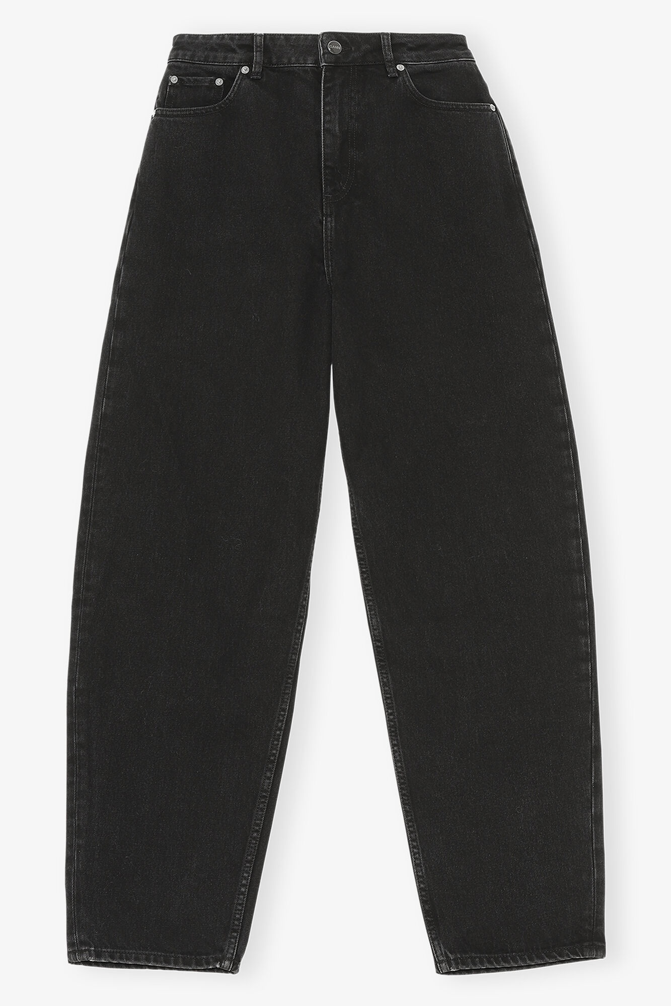 These Washed Black Stary Jeans are designed for a fitted look at the waist and a relaxed fit through the hips and thighs with a curved-leg silhouette. The jeans feature 5 pockets with belt loops, a zip and button closure and a GANNI logo at the back pocket. DETAILS - 100% organic cotton. Learn more about our materials - 5 pocket style with a zip and button closure - GANNI logo at the back pocket Made in: Tunisia Product ID: J1642 SIZE & FIT - Designed for a fitted look at the waist, relaxed through the hips and thighs - High-rise waist - Voluminous curved-leg silhouette