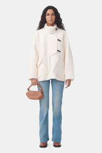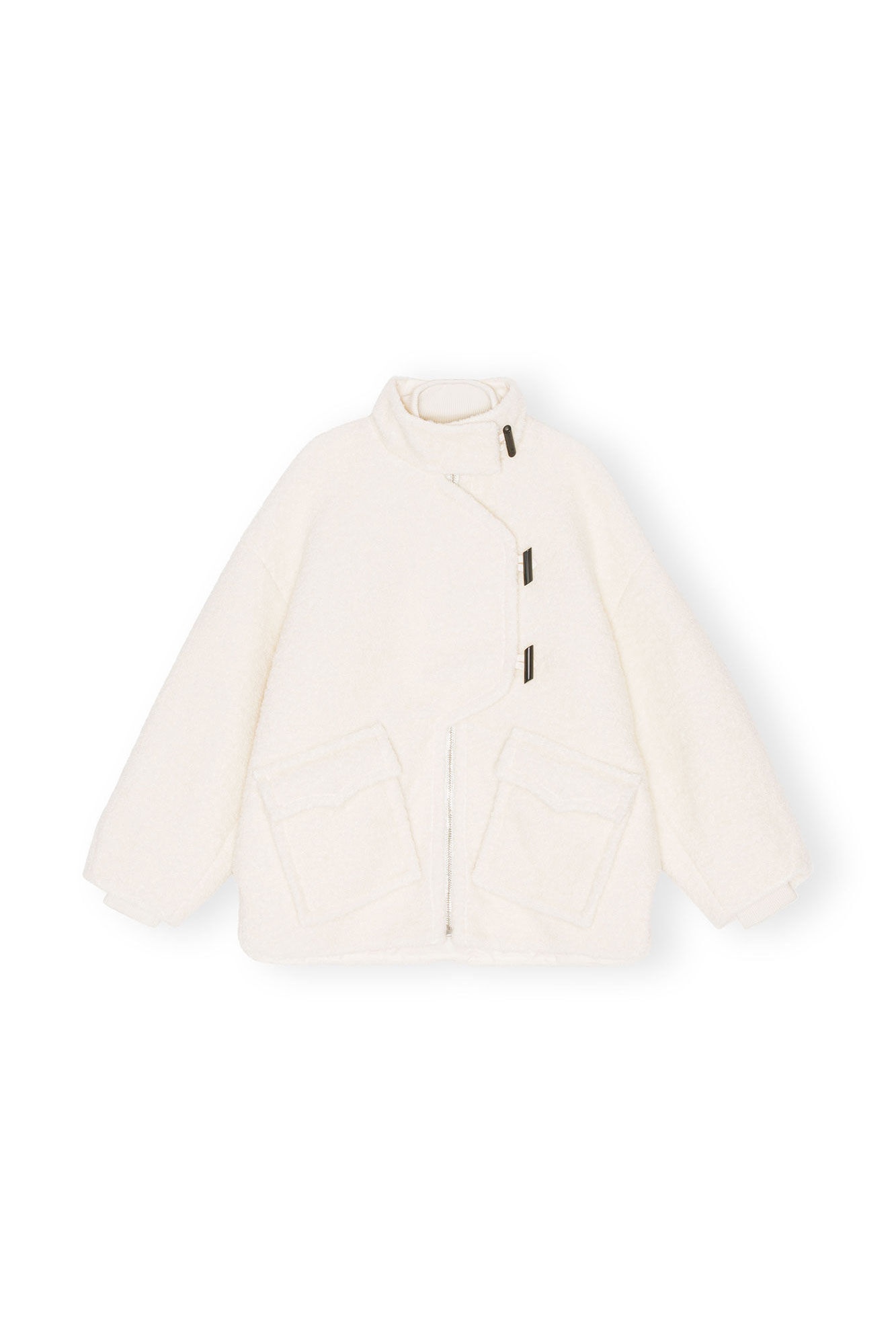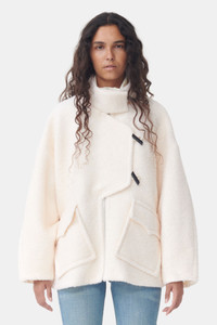 This Egret Boucle Jacket features dropped shoulders and side pockets. The jacket has a zip closure and toggle buttons with an asymmetrical closing. DETAILS - 60% recycled wool, 40% recycled polyester. Learn more about our materials - Lining composition: 100% Recycled Polyester - Dropped shoulders - Toggle buttons - Asymmetrical closing - Zip closure - Side pockets Made in: China Product ID: F7490 SIZE & FIT - Designed for an oversized fit - Take your normal size to achieve the model's look, those in between sizes or with a smaller frame might consider taking a size down for a closer fit - Zoey is 5’10” and wears a size US 4