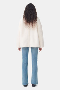 WHITE BOUCLE WOOL SHOULDER JACKET