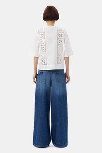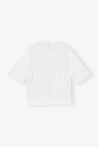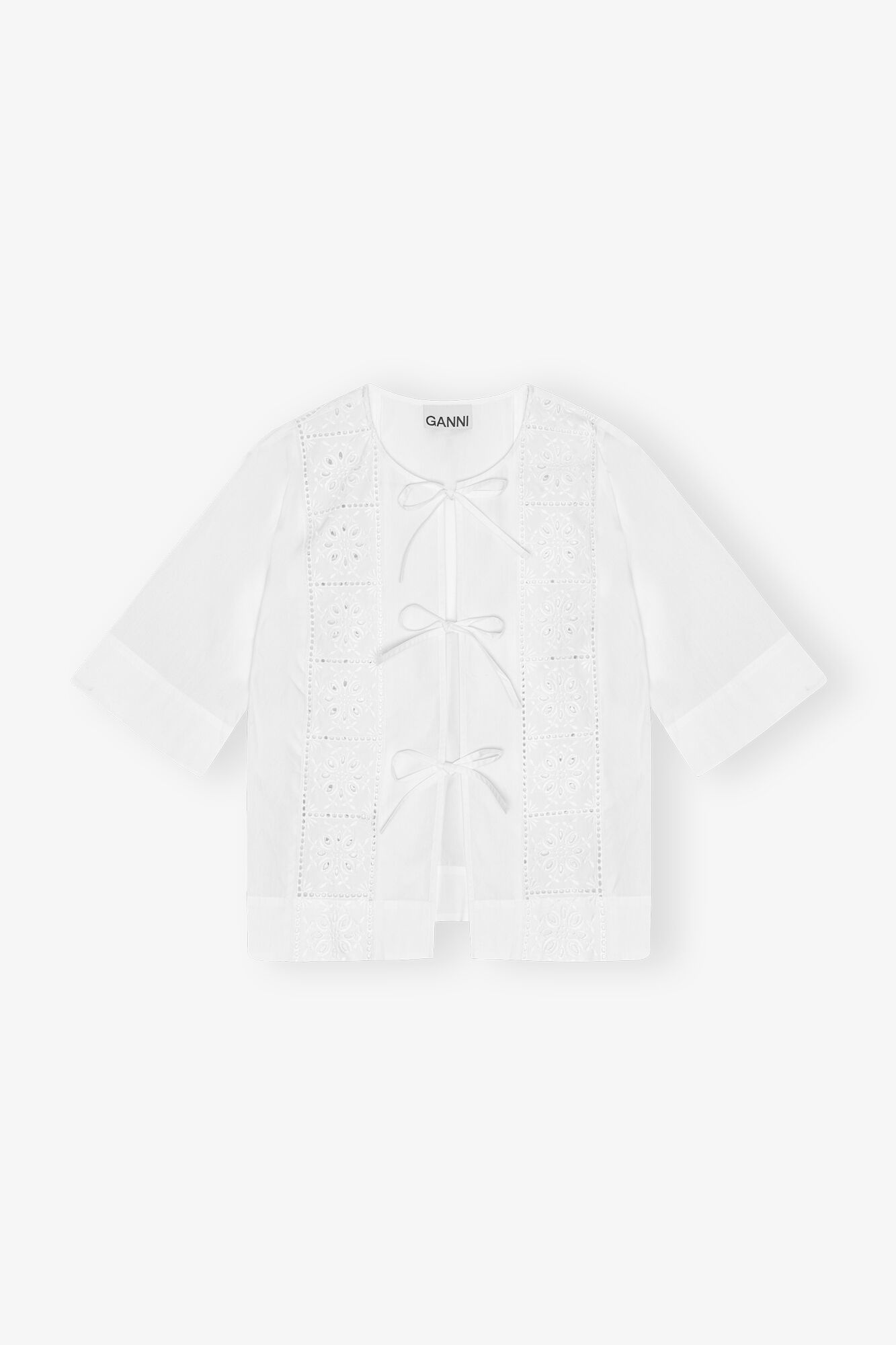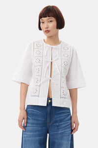 This White Broderie Anglaise Tie Blouse features a round neckline, three tie bands at the front and elbow-length sleeves. DETAILS - 100% organic cotton. Learn more about our materials - Round neckline - Elbow-length sleeves - Three tie bands at the front Made in: India Product ID: F9655 SIZE & FIT - Designed for a regular fit - Fits true to size, take your normal size - Ariunzul is 5’9” and wears a size US 4