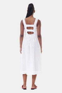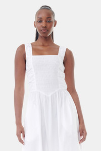 WHITE COTTON POPLIN MIDI STRAP SMOCK DRESS