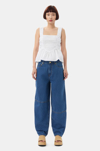 WHITE COTTON POPLIN SMOCK STRAP TOP