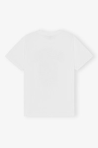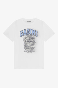 This White Relaxed Jersey Kitty T-shirt features a round neckline, short sleeves and a GANNI logo. DETAILS - 100% organic cotton. Learn more about our materials - Round neckline - Short sleeves - GANNI logo Made in: Portugal Product ID: T4272 SIZE & FIT - Relaxed fit - Mariana is 5’10” and wears a size US 4