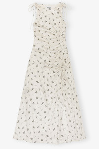 WHITE SATIN GATHERED DRESS