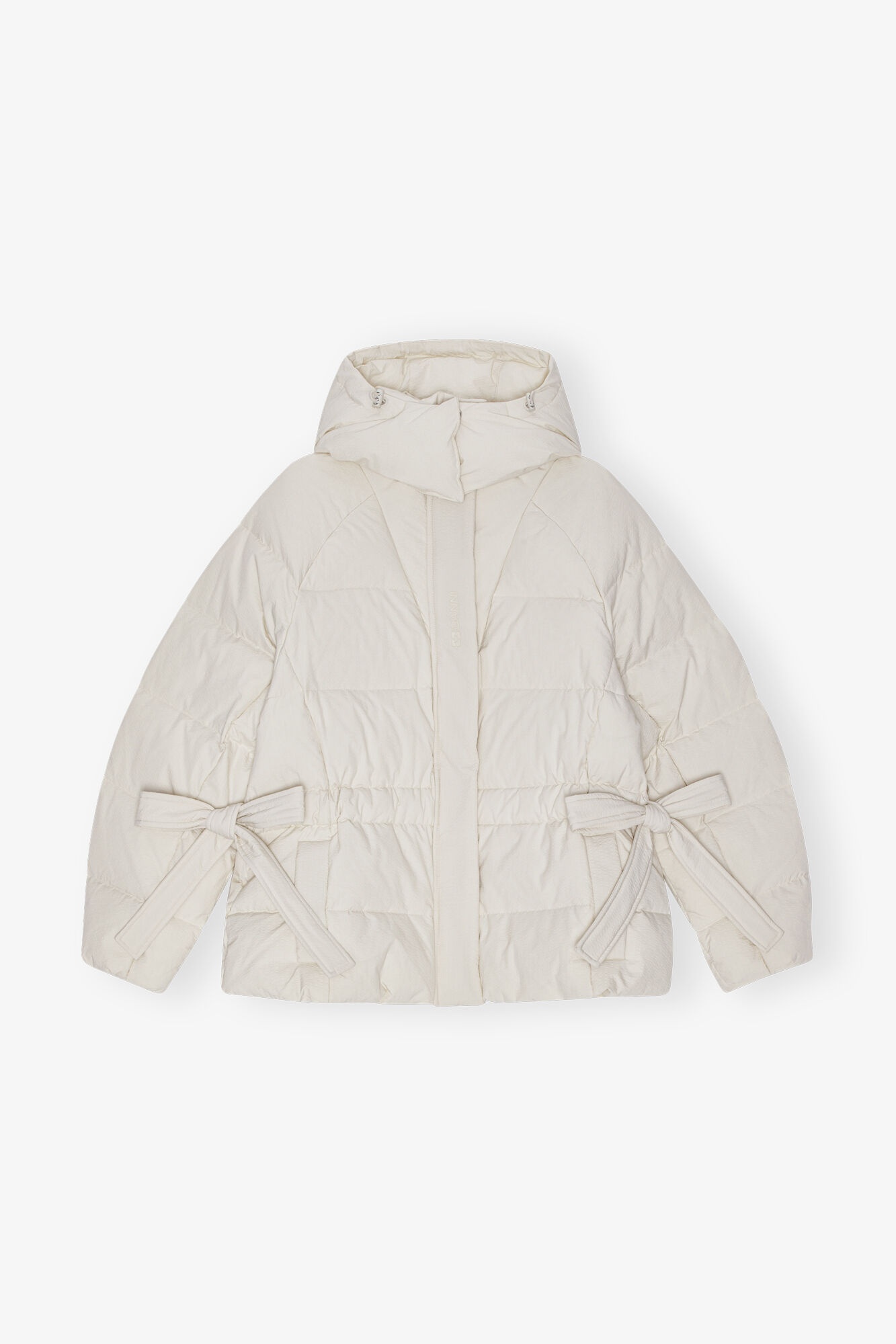 This White Tech Oversized Puffer Jacket features a high collar and a hood. The coat has a front zipper closure with a hidden placket, adjustable ties at the waist and side pockets. DETAILS - 100% recycled polyester. Learn more about our materials - High collar - Front zipper closure with a hidden placket - Side pockets - Adjustable ties at the waist - Hood Made in: China Product ID: F9690 SIZE & FIT - Designed for an oversized fit