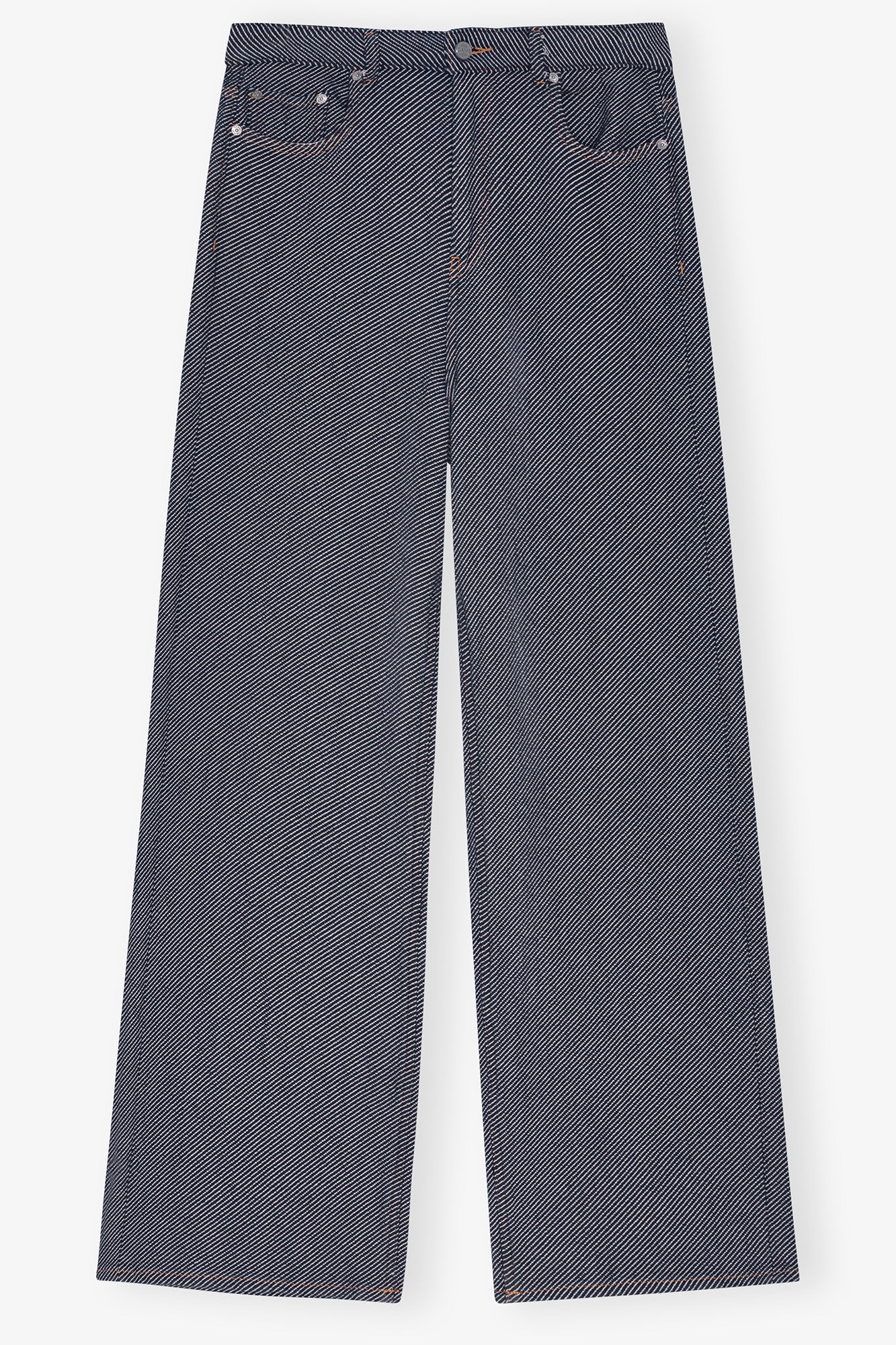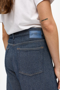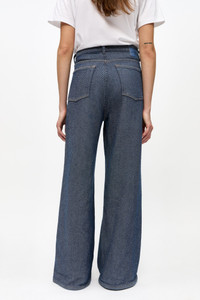 Redefine your daily wardrobe with the versatile Blue Heavy Twill Denim Marri Jeans. Crafted from non-stretchy organic cotton with a visible heavy twill structure. Designed in a relaxed fit featuring a mid-rise waist, wide legs, and classic 5-pocket detailing. DETAILS - 100% organic cotton. Learn more about our materials - 5 pockets - Belt loops - Sewn-on GANNI logo patch Made in: Tunisia Product ID: J1723 SIZE & FIT - Denise is 5’9” and wears a size 27