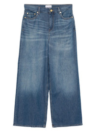 wide-leg jeans Highlights - Navy blue - Front button and zip fastening - Belt loops - Classic five pockets - Contrast stitching Imported Composition Organic Cotton 64%, Lyocell 36% SIZE & FIT Model measurements Height 5 ft 9 in(1.76 m) Bust/Chest 31.1 in(79 cm) Hips 35.03 in(89 cm) Waist 24.4 in(62 cm) FittingInformation Designed with a wide leg cut, these jeans allow for a close fit at the waist and offer a loose and roomy fit over the leg Constructed from stretch denim, this piece offers a stretch fit with durability