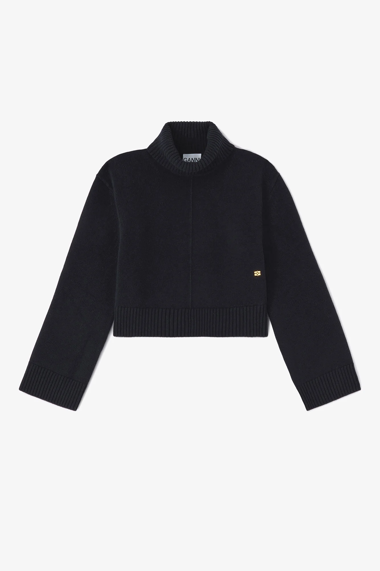 This sweater features a high collar, ribbed edges and a GANNI logo. DETAILS - 100% Wool Learn more about our materials - High collar - Ribbed edges - GANNI logo Made in: China Product ID: A1070075 SIZE & FIT - Relaxed fit - Lilli-zoe is 5’9” and wears a size S - Tia is 5’10” and wears a size S