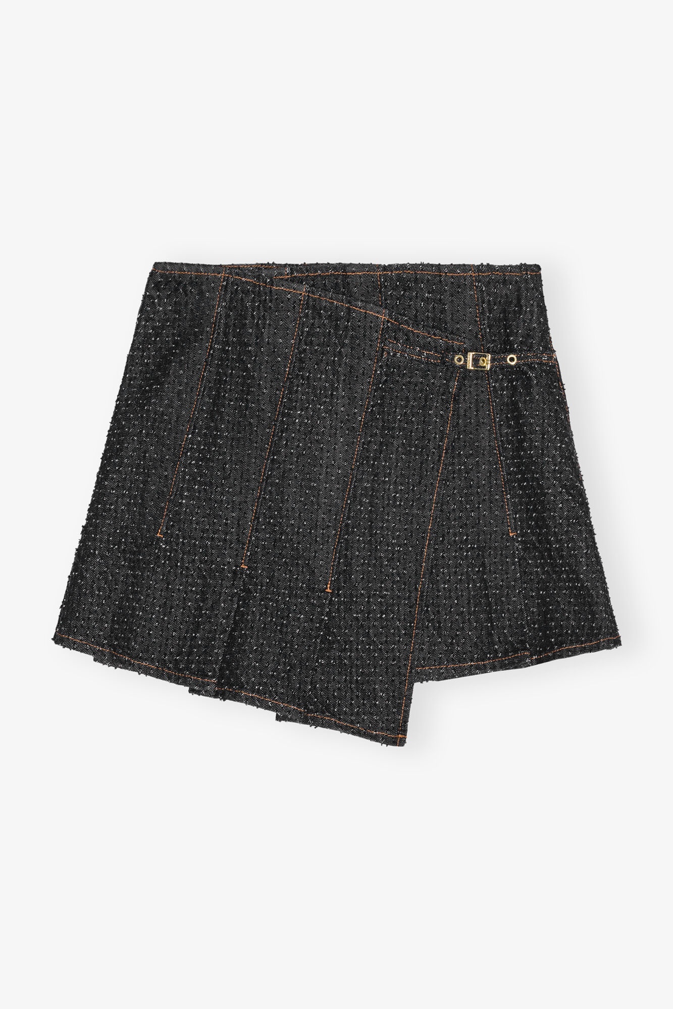 BLACK FLUFFY DENIM WRAP MINI SKIRT