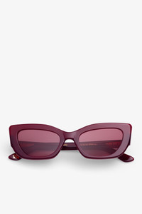 Get ready for sunnier days with the second instalment of GANNI x Ace & Tate collab. Embrace a futuristic outlook with new frames, directional silhouettes + fresh colourways crafted from materials that push the boundaries. Exclusively made using recycled acetate and Renew Bio Acetate. The latest innovative alternative in the eyewear industry to traditional acetate is made from sustainably sourced wood pulp combined with bio-plasticiser instead of fossil fuels. These Sadie Sunglasses are designed in a rectangular cat-eye shape and feature a cherry red frame, tone-in-tone lenses, logo detailing on the temples and middle endpieces. DETAILS - 42% cellulose, 28% certified recycled content (achieved via mass balance approach), 30% bio plasticiser. Learn more about our materials - Maximum UV protection - Cherry red frame - Tone-in-tone lenses - Logo detailing on the temples - Middle endpieces - Comes with a leopard cleaning cloth made from 100% RPET - The sunglasses will be packaged in a 100% RPET leopard pouch and a packaging box made from 70% sugarcane and 30% FSC paper pulp with an FSC paper wrapping around it Made in: China Product ID: A6039 SIZE & FIT - Designed in a rectangular cat-eye shape - Frame dimensions: 5.3 cm x 2.0 cm x 14.5 cm / 2.09 inches x 0.79 inch x 5.71 inches
