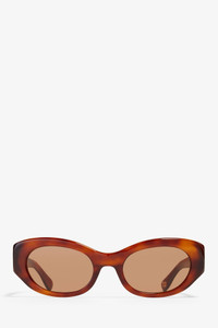 Get ready for sunnier days with the second instalment of GANNI x Ace & Tate collab. Embrace a futuristic outlook with new frames, directional silhouettes + fresh colourways crafted from materials that push the boundaries. Exclusively made using recycled acetate and Renew Bio Acetate. The latest innovative alternative in the eyewear industry to traditional acetate is made from sustainably sourced wood pulp combined with bio-plasticiser instead of fossil fuels. These Dakota Sunglasses are designed in a smooth oval shape and feature a brown frame, tone-in-tone lenses, logo detailing on the temples and wrapped endpieces. DETAILS - 42% cellulose, 28% certified recycled content (achieved via mass balance approach), 30% bio plasticiser. Learn more about our materials - Maximum UV protection - Brown frame - Tone-in-tone lenses - Logo detailing on the temples - Wrapped endpieces - Comes with a leopard cleaning cloth made from 100% RPET - The sunglasses will be packaged in a 100% RPET leopard pouch and a packaging box made from 70% sugarcane and 30% FSC paper pulp with an FSC paper wrapping around it Made in: China Product ID: A6041 SIZE & FIT - Designed in a smooth oval shape - Frame dimensions: 5.4 cm x 2.1 cm x 14.0 cm / 2.12 inches x 0.83 inch x 5.51 inches