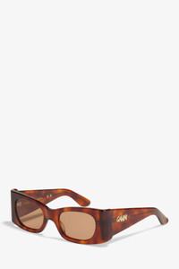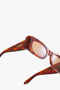 Get ready for sunnier days with the second instalment of GANNI x Ace & Tate collab. Embrace a futuristic outlook with new frames, directional silhouettes + fresh colourways crafted from materials that push the boundaries. Exclusively made using recycled acetate and Renew Bio Acetate. The latest innovative alternative in the eyewear industry to traditional acetate is made from sustainably sourced wood pulp combined with bio-plasticiser instead of fossil fuels. These Kayla Sunglasses feature a brown frame, tone-in-tone lenses, logo detailing on the temples together with winged endpieces that are inspired by the original GANNI sunglasses silhouette. DETAILS - 42% cellulose, 28% certified recycled content (achieved via mass balance approach), 30% bio plasticiser. Learn more about our materials - Maximum UV protection - Brown frame - Tone-in-tone lenses - Logo detailing on the temples - Winged endpieces that are inspired by the original GANNI sunglasses silhouette - Comes with a leopard cleaning cloth made from 100% RPET - The sunglasses will be packaged in a 100% RPET leopard pouch and a packaging box made from 70% sugarcane and 30% FSC paper pulp with an FSC paper wrapping around it Made in: China Product ID: A6036 SIZE & FIT - Designed with winged endpieces that are inspired by the original GANNI sunglasses silhouette - Frame dimensions: 5.1 cm x 2.1 cm x 14.5 cm / 2.00 inches x 0.83 inch x 5.71 inches