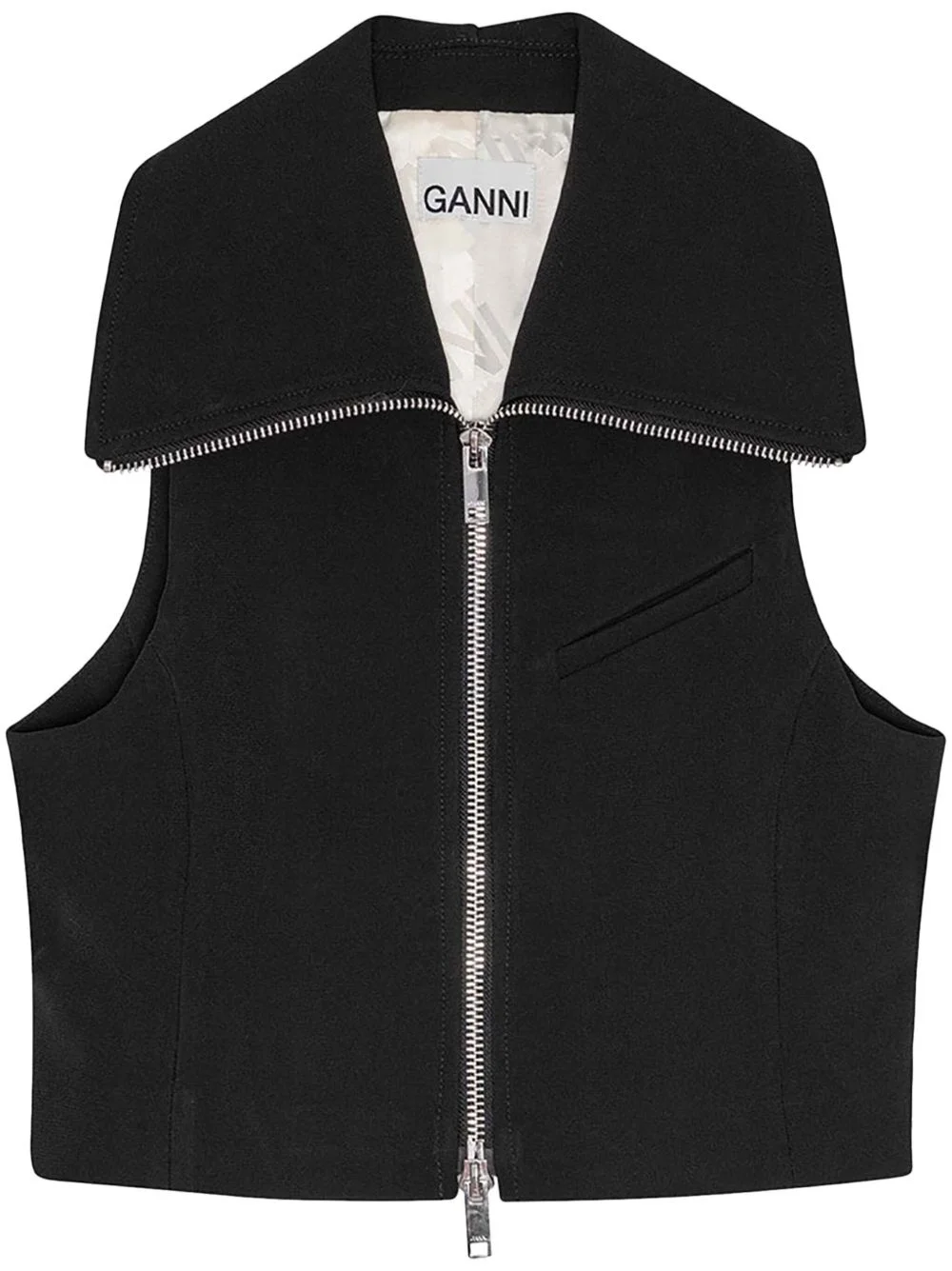 sleeveless zipped vest Highlights - Black - Recycled polyester - Crepe texture - Zip fastening - Sleeveless - Straight hem Imported Composition Recycled Polyester 100%