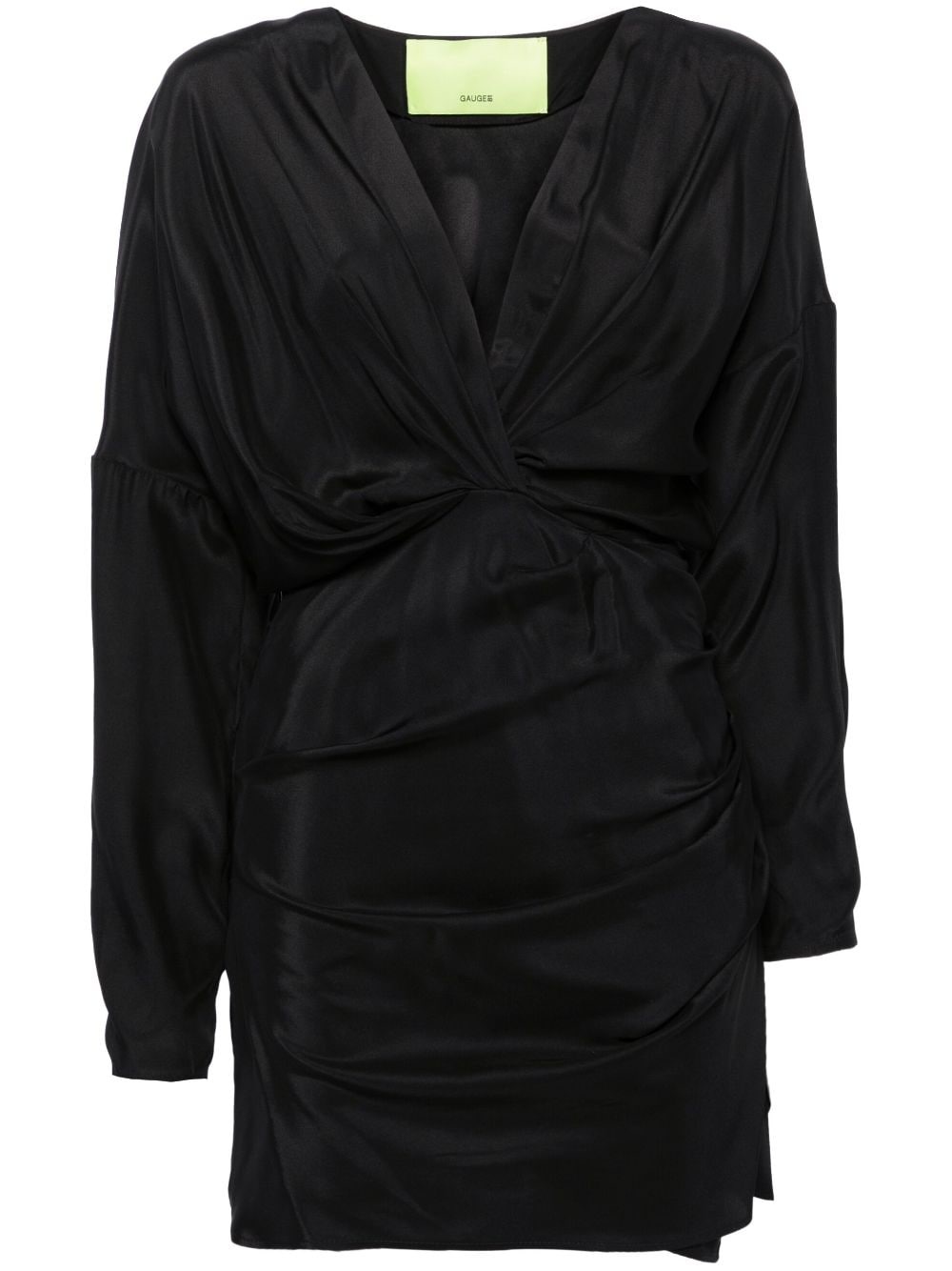 Asuka drapped silk dress Highlights - Black - Silk - Satin finish - Draped design - Pleat detailing - Plunging v-neck - Concealed side zip fastening - Drop shoulder - Long sleeves - Fitted waistline - Asymmetric hem - Thigh-high Imported Composition Outer: Silk 100% Lining: Acetate 60%, Cupro 40% SIZE & FIT Model measurements Height 5 ft 11 in(1.8 m) Bust/Chest 34.25 in(87 cm) Hips 35.82 in(91 cm) Waist 24.8 in(63 cm) FittingInformation Designed for a loose fit at the chest with a close fit over the waist and hips Made from a lightweight non-stretch fabric This piece fits true to size – take your usual size