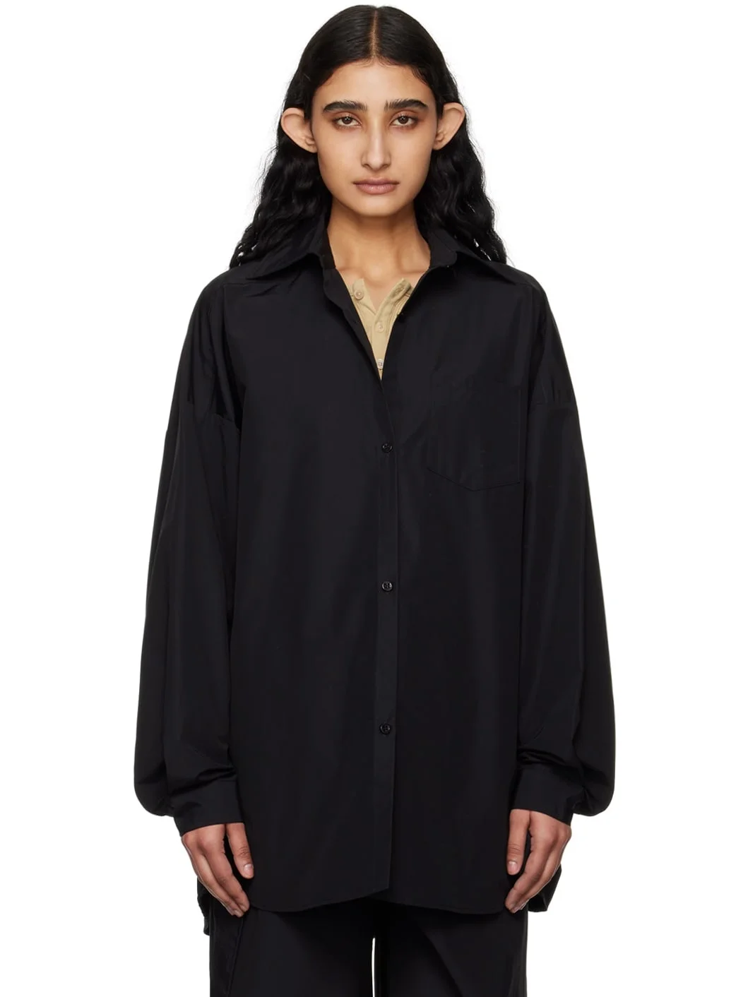 Cotton- and nylon-blend taffeta shirt. · Spread collar · Button closure · Patch pocket · Shirttail hem · Dropped shoulders · Single-button barrel cuffs · Twin pleats at back yoke Supplier color: Black 62% cotton, 38% polyamide. Made in Macedonia 242329F109004