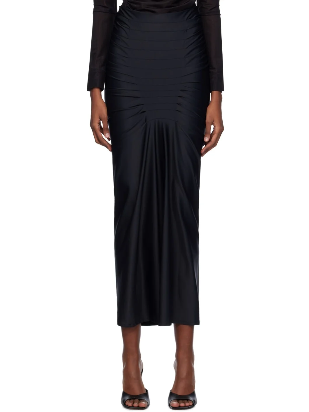 Stretch nylon jersey skirt. · Pleats throughout · Zip closure at back Supplier color: Black 78% polyamide, 22% elastane. Made in Macedonia 241329F093003