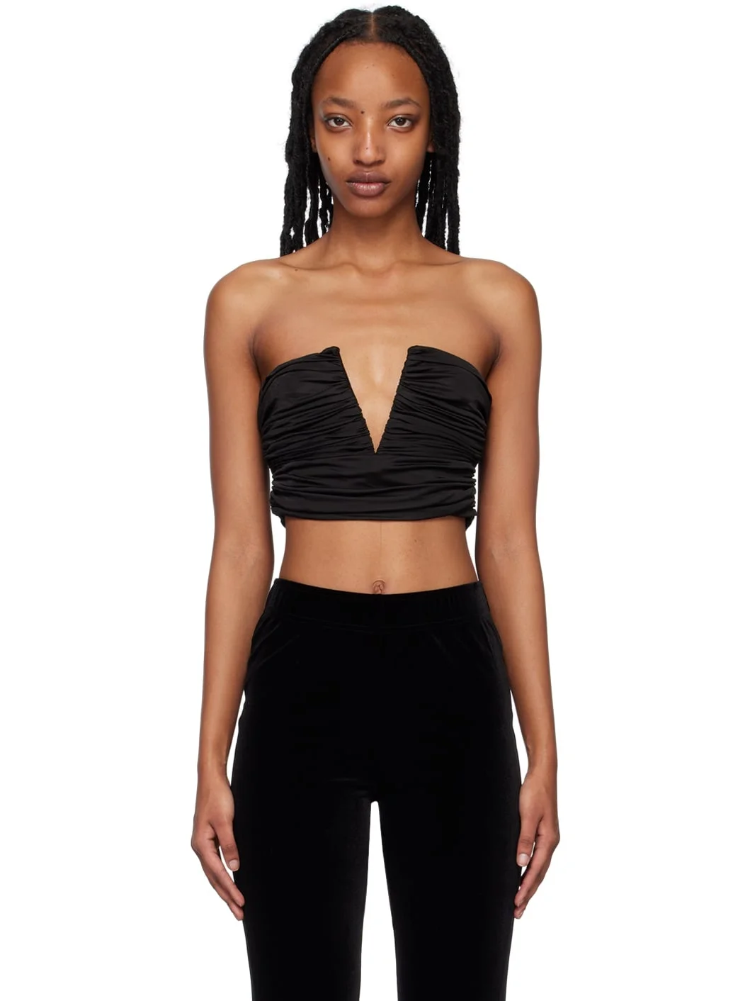 Viscose jersey camisole. Ruching and boning throughout. · Off-the-shoulder construction · Plunging V-neck · Cropped hem · Concealed zip closure at side seam · Full viscose jersey lining Supplier color: Black 100% viscose. Made in Portugal 231329F111002