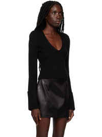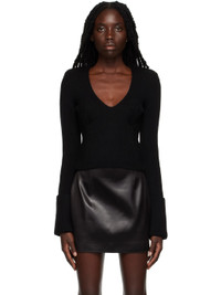 Rib knit virgin wool sweater. · Plunging V-neck · Padded shoulders · Extended cuffs Supplier color: Black 100% virgin wool. Made in Italy 231329F096001