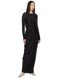 Silk satin skirt. · Knotted detailing at waistband · Gathering at front · Gusset at back · Zip closure at back · Full cupro-blend satin lining Supplier color: Black Body: 100% silk. Lining: 60% cupro, 40% acetate. Made in Macedonia 241329F093000