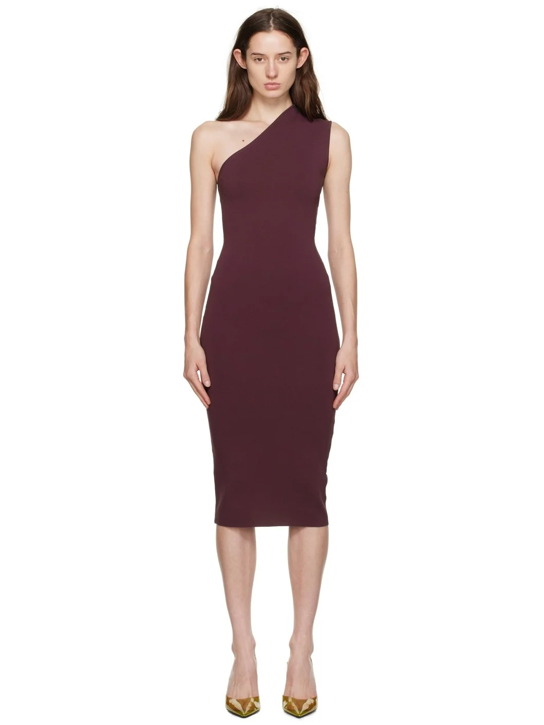 Knit rayon- and nylon-blend dress. · Single-shoulder construction · Rib knit neckline and armscye Supplier color: Merlot 65% rayon, 35% polyamide. Made in Turkey 241329F052005