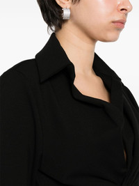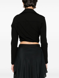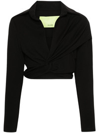 Vallera cropped shirt Highlights - Black - Stretch-design - Knot detailing to the front - Pointed flat collar - V-neck - Long sleeves - Cropped - Asymmetric hem Imported Composition Viscose 67%, Polyamide 28%, Elastane 5% SIZE & FIT Model measurements Height 5 ft 11 in(1.8 m) Bust/Chest 35.03 in(89 cm) Hips 37.4 in(95 cm) Waist 24.8 in(63 cm) FittingInformation Designed for a slim fit that sits just away from the body offering a close yet comfortable fit Cropped in length Made from a midweight stretch fabric, this piece offers elasticity and flexibility when worn This piece fits true to size – take your usual size