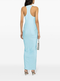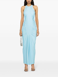 halterneck ruched maxi dress
