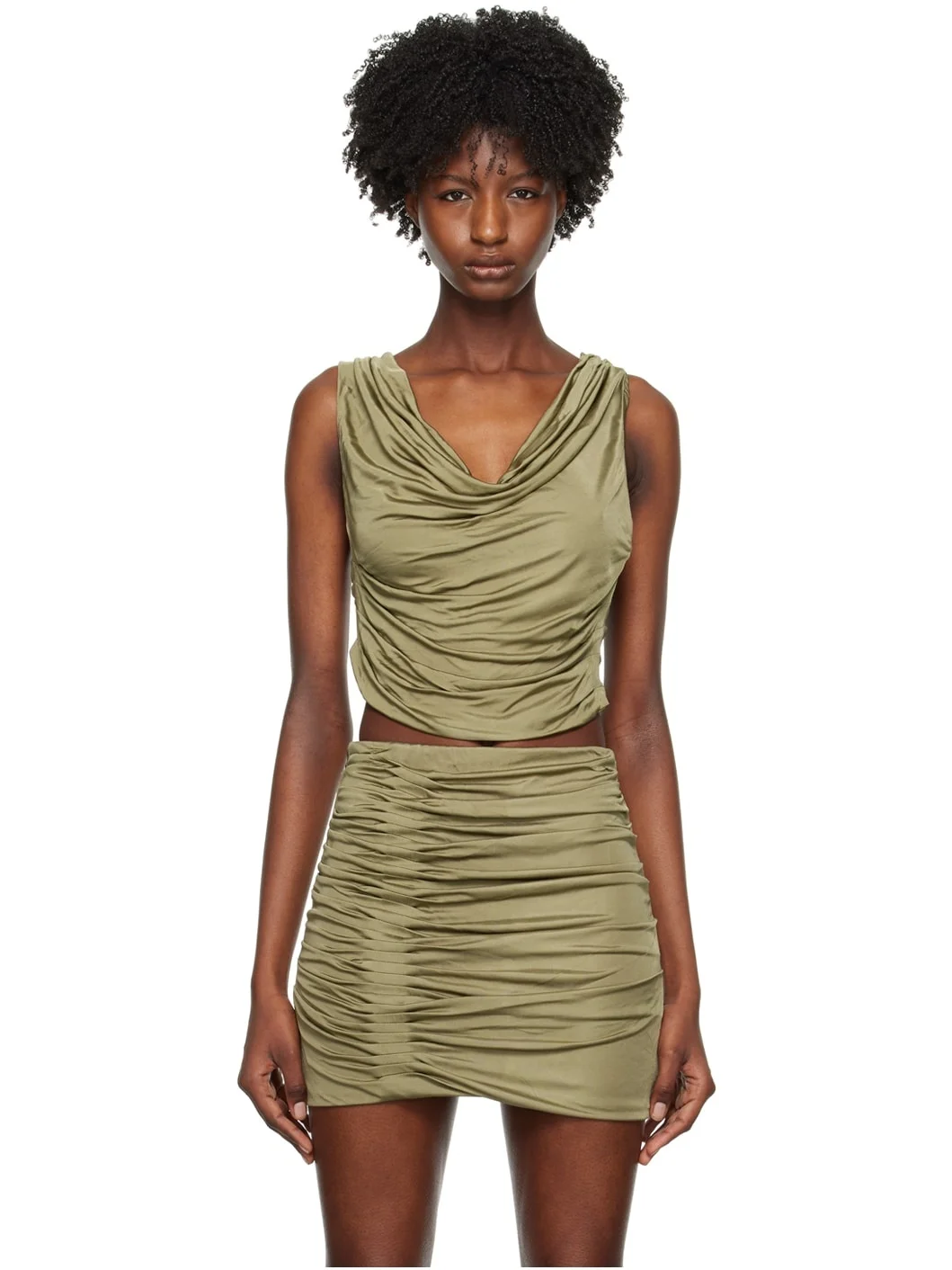 Viscose jersey tank top. · Draped construction · Cowl neck · Criss-crossing straps at open back Supplier color: Cumin 100% viscose. Made in Turkey 232329F111001