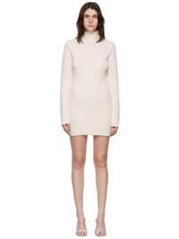 Long sleeve rib knit virgin wool short dress in off-white. · Turtleneck collar · Open back Supplier color: Ecru 100% virgin wool. Made in Italy 221329F052004