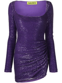 sequin-embellished long-sleeve minidress Amsterdam-based label GAUGE81 showcases their feminine side with this sequin-embellished minidress. Presented in a deep purple hue, the long-sleeve silhouette is defined by a low-cut square neck and uneven hemline. Imported Composition Outer: Polyester 100% Lining: Viscose 100% SIZE & FIT Model measurements Height 5 ft 10 in(1.78 m) Bust/Chest 29.92 in(76 cm) Hips 34.64 in(88 cm) Waist 23.62 in(60 cm) FittingInformation This piece fits true to size. We recommend you get your regular size Cut for a slim fit Made with a mid-weight fabric
