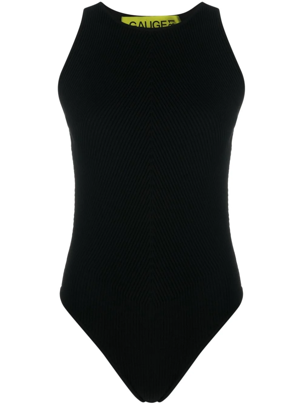 sleeveless round-neck bodysuit GAUGE81 highlights shape and texture throughout their collections. The black bodysuit from the Amsterdam-based label is cut to a sleeveless silhouette and a fine ribbed texture. Highlights - Black - Round neck - Sleeveless - Fine ribbed - Just a reminder that this piece must be tried on over your own garments. Imported Composition Rayon 65%, Polyamide 35% SIZE & FIT Model measurements Height 5 ft 10 in(1.78 m) Bust/Chest 31.49 in(80 cm) Hips 36.22 in(92 cm) Waist 25.59 in(65 cm) FittingInformation Designed for a close fit throughout Made with a midweight knit, this piece offers some stretch This piece fits true to size – take your usual size