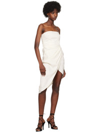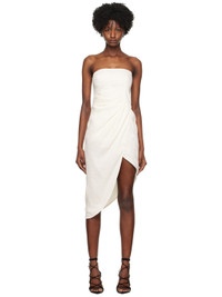 Stretch linen- and viscose-blend twill dress. · Wrap construction · Straight neck · Boning at chest · Draping at waist · Vented asymmetric hem · Full satin lining Supplier color: Ivory Body: 61% linen, 36% viscose, 3% elastane. Lining: 65% acrylic, 35% polyester. Made in Portugal 232329F054002