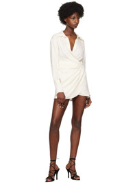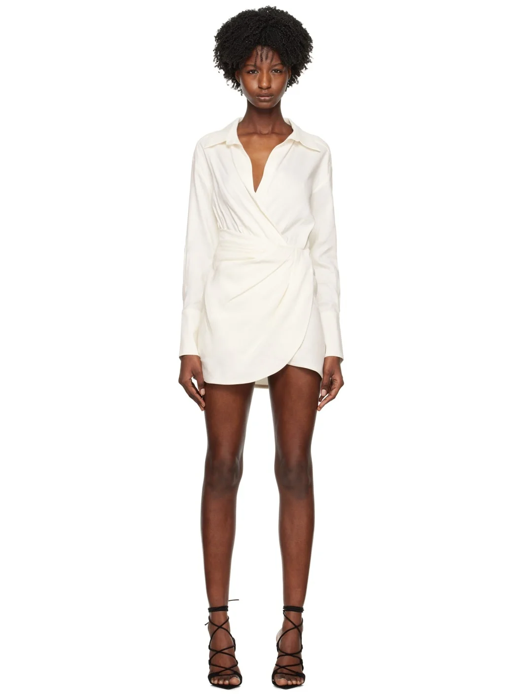 Stretch linen- and viscose-blend twill dress. · Wrap construction · Spread collar · V-neck · Gathering at side seam · Asymmetric vented hem · Two-button barrel cuffs · Box pleat at back yoke Supplier color: Ivory 61% linen, 36% viscose, 3% elastane. Made in Portugal 232329F052009