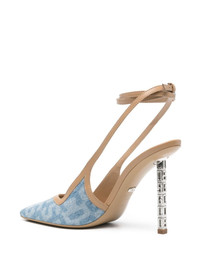 120mm slingback leather pumps Highlights - Light blue/beige - Denim/calf leather - Smooth grain - Monogram pattern - Square toe - Buckle-fastening slingback strap - Branded footbed - 120mm logo-engraved heel - Leather outsole - This piece comes complete with a protective dust bag. Made in Italy Composition Outer: Fabric 100%, Calf Leather 100% Lining: Calf Leather 100% Sole: Calf Leather 100% SIZE & FIT Measurement HEEL 4.72 in(12 cm)