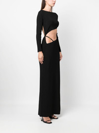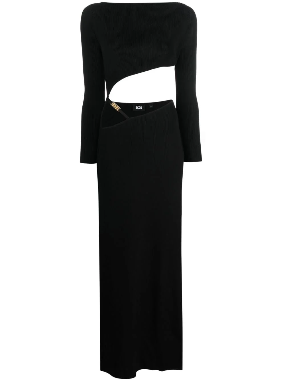 asymmetric ribbed-knit dress Highlights - Black - Ribbed knit - Shift style - Asymmetric design - Gold-tone logo plaque - Cut-out detailing - Boat neck - Slip-on style - Long sleeves - Side slit - Floor-length Imported Composition Viscose 94%, Polyester 6% SIZE & FIT Model measurements Height 5 ft 10 in(1.78 m) Bust/Chest 33.46 in(85 cm) Hips 36.22 in(92 cm) Waist 23.22 in(59 cm) FittingInformation Designed for a close fit throughout Made with a midweight knit, this piece offers some stretch This piece fits true to size – take your usual size Washing instructions Machine Wash