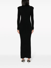 Bling ribbed maxi dress Highlights - Black - Ribbed knit - Rhinestone embellishment - Logo embellishment - Round neck - Front button fastening - Shoulder pads - Long sleeves - Front slit - Straight hem - Ankle-length Made in Italy Composition Polyester 100% SIZE & FIT Model measurements Height 5 ft 10 in(1.78 m) Bust/Chest 33.07 in(84 cm) Hips 35.82 in(91 cm) Waist 25.98 in(66 cm) Measurement Shoulder Width 13.38 in(34 cm) LENGTH 53.14 in(135 cm) WAIST 22.04 in(56 cm) BUST 25.19 in(64 cm) FittingInformation Designed for a close fit throughout The internal shoulder pads offer a structured shape Made with a midweight knit, this piece offers some stretch This piece fits true to size – take your usual size Washing instructions Machine Wash
