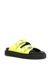 buckle-strap leather slides Highlights - Lime green - Calf leather - Open toe - Two buckle-strap fastenings - Moulded footbed - Flat rubber sole - Branded insole Made in Italy Composition Lining: Calf Leather 100% Sole: Rubber 100% Outer: Calf Leather 100% SIZE & FIT Measurement HEEL 1.77 in(4.5 cm) Sole height 1.37 in(3.5 cm)