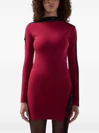 button trim dress Highlights - Red - Mock neck - Side button detail - Long sleeves - Stripe detail - Ribbon detail Imported Composition Viscose 65%, Polyamide 35% Washing instructions Read Manufacturer Guidelines