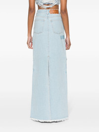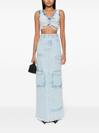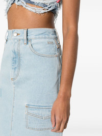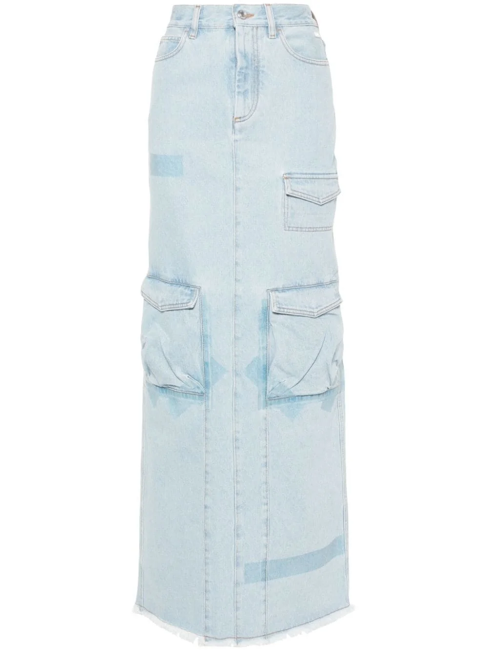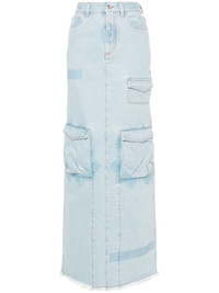 cargo denim skirt Highlights - Light blue - Cotton - Denim - Silver-tone logo plaque to the front - Logo patch to the rear - Belt loops - Classic five pockets - Three front flap pockets - Rear slit - Frayed hem - Long length - High-waisted - Front button and zip fastening Made in Italy Composition Cotton 100% SIZE & FIT Model measurements Height 5 ft 11 in(1.8 m) Bust/Chest 30.7 in(78 cm) Hips 35.03 in(89 cm) Waist 24.4 in(62 cm) FittingInformation This maxi-length skirt is intended to be worn high on the waist Sturdy and hard-wearing, this denim piece offers no stretch This piece fits true to size – take your usual size