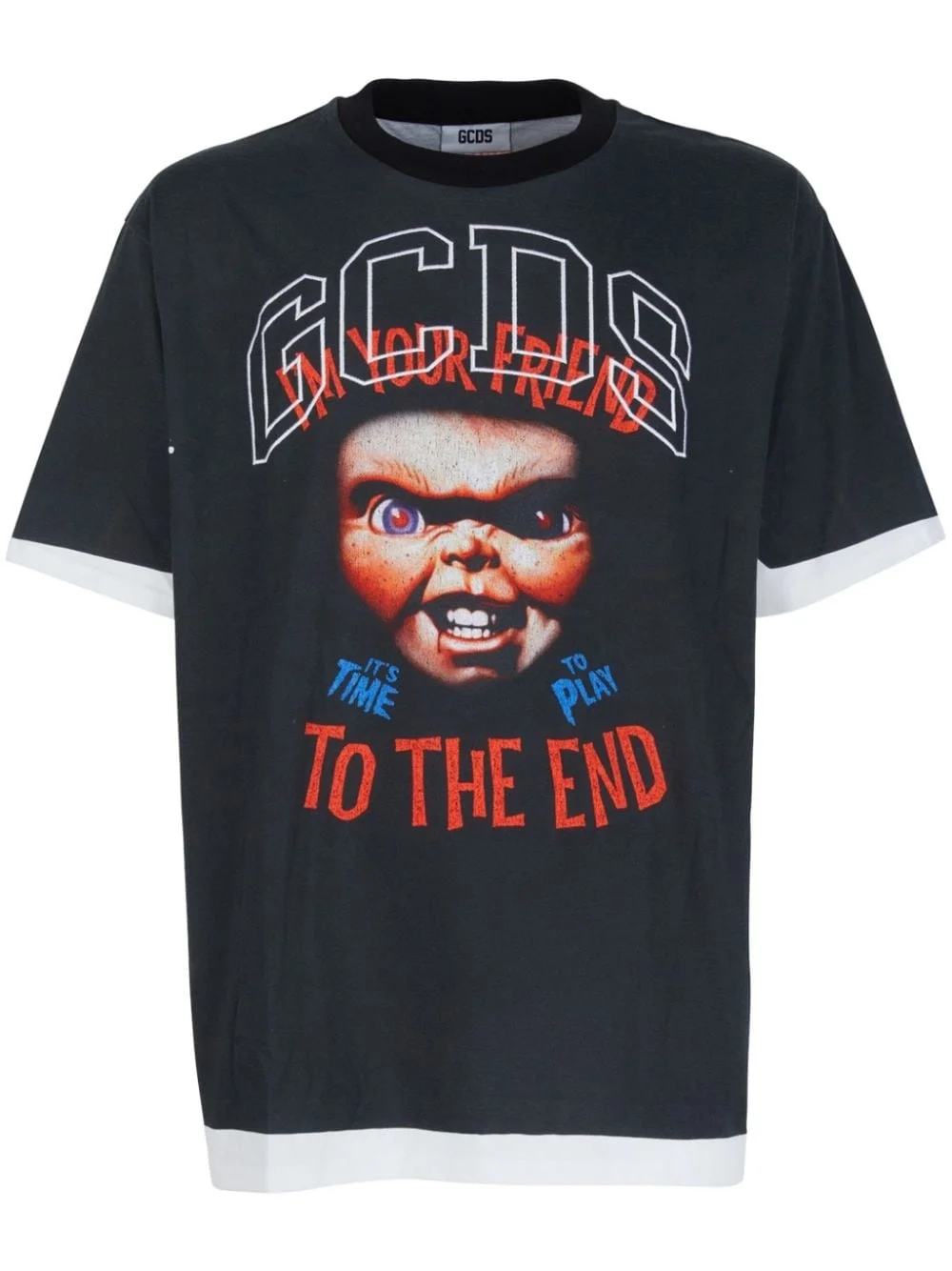 Chucky T-shirt Highlights - Black - Cotton - Logo print to the front - Graphic print to the front - Slogan print to the rear - Round neck - Drop shoulder - Short sleeves - Straight hem - When buying this unisex item, keep in mind that it is graded in standard men's sizing. Imported Composition Cotton 100%