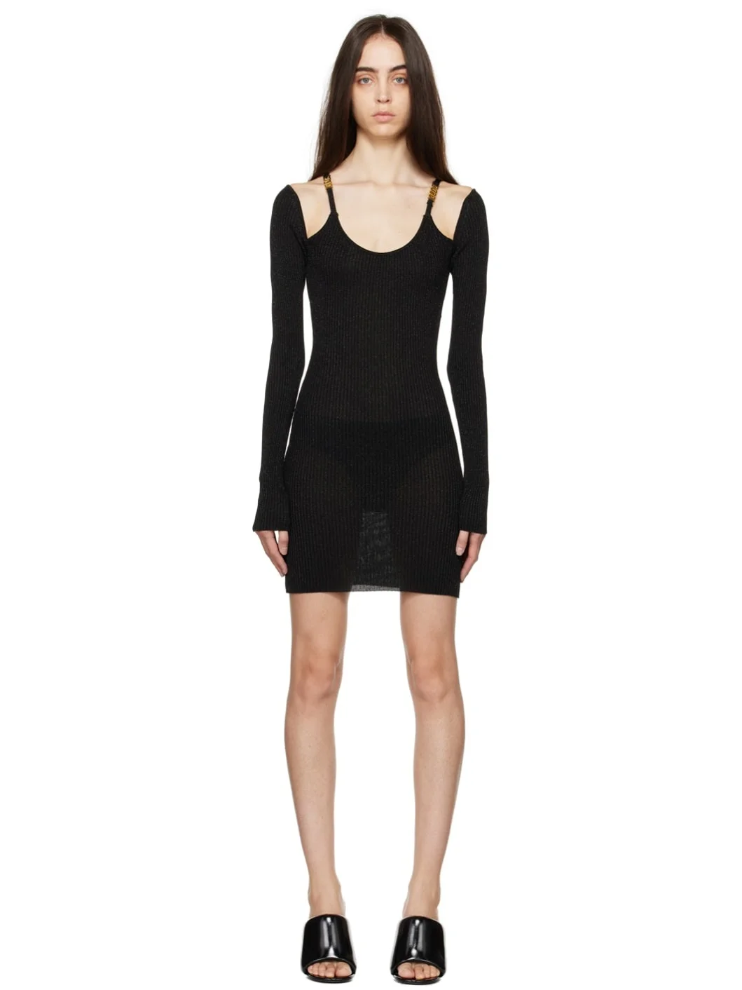 Rib knit viscose-blend lurex dress. · Scoop neck · Shoulder straps with logo hardware · Low back Supplier color: Black 70% viscose, 15% nylon, 15% metal. Made in Italy 222308F052002