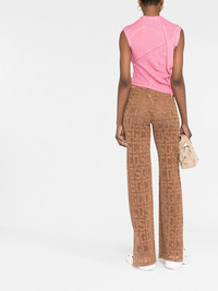 crochet high-waisted trousers orange sheer coverage crochet knit all-over logo print drawstring fastening waist side slits straight hem Made in Italy Composition Viscose 70%, Polyester 15%, Metallic Fibre 15% SIZE & FIT Model measurements Height 5 ft 11 in(1.8 m) Bust/Chest 31.49 in(80 cm) Hips 36.61 in(93 cm) Waist 24.4 in(62 cm) FittingInformation This piece fits true to size. We recommend you get your regular size Designed to be fitted at the waist and hips, loose over the leg Made with a mid-weight fabric Washing instructions Hand Wash