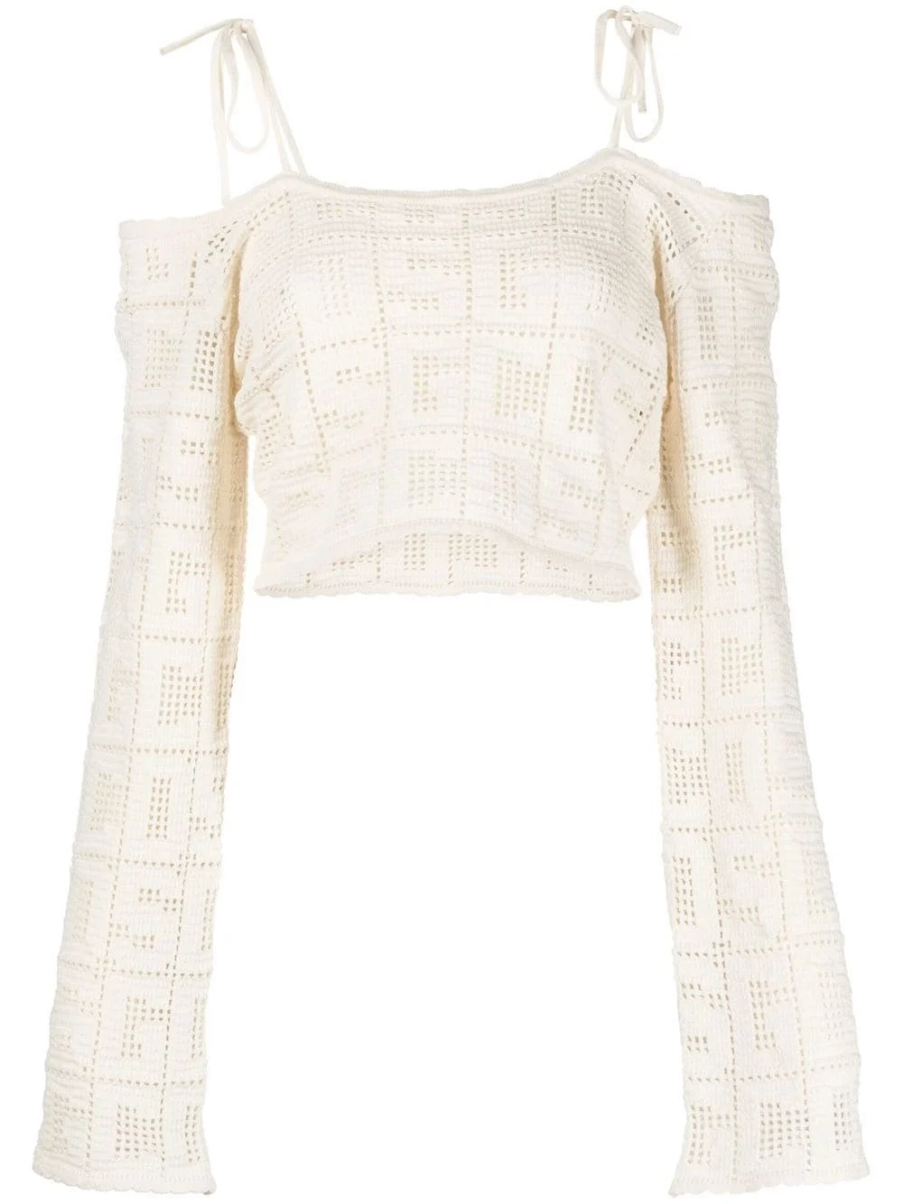 crochet-knit logo crop top GCDS takes an understated approach to branding with this cream crop top. It's crochet-knit with open detailing and repeating logos. Made in Italy Composition Acrylic 50%, Cotton 50% SIZE & FIT Model measurements Height 5 ft 10 in(1.79 m) Bust/Chest 31.1 in(79 cm) Hips 35.03 in(89 cm) Waist 24.01 in(61 cm) FittingInformation This piece fits true to size. We recommend you get your regular size Cut for a relaxed fit Made with a mid-weight fabric Washing instructions Hand Wash
