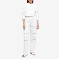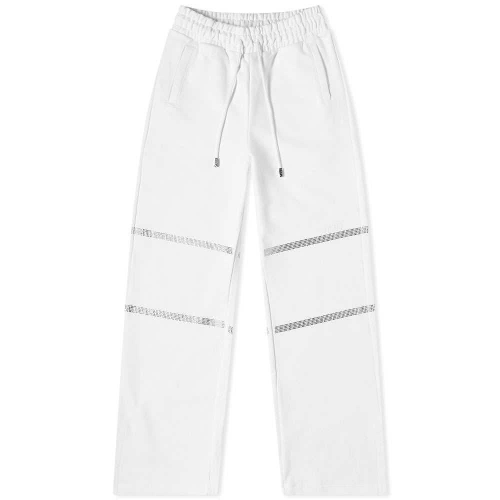 GCDS’ unique blend of pop culture and Italian luxury shines through with the Bling sweatpants. Their wide-leg silhouette is clean and fresh in bright white, while sparkling rhinestone stripes add some vintage sporting glamour. - 100% Cotton - Elasticated Drawstring Waist - 2 Side Pockets - Split Hems - Rhinestone Embellishments - Made in Italy