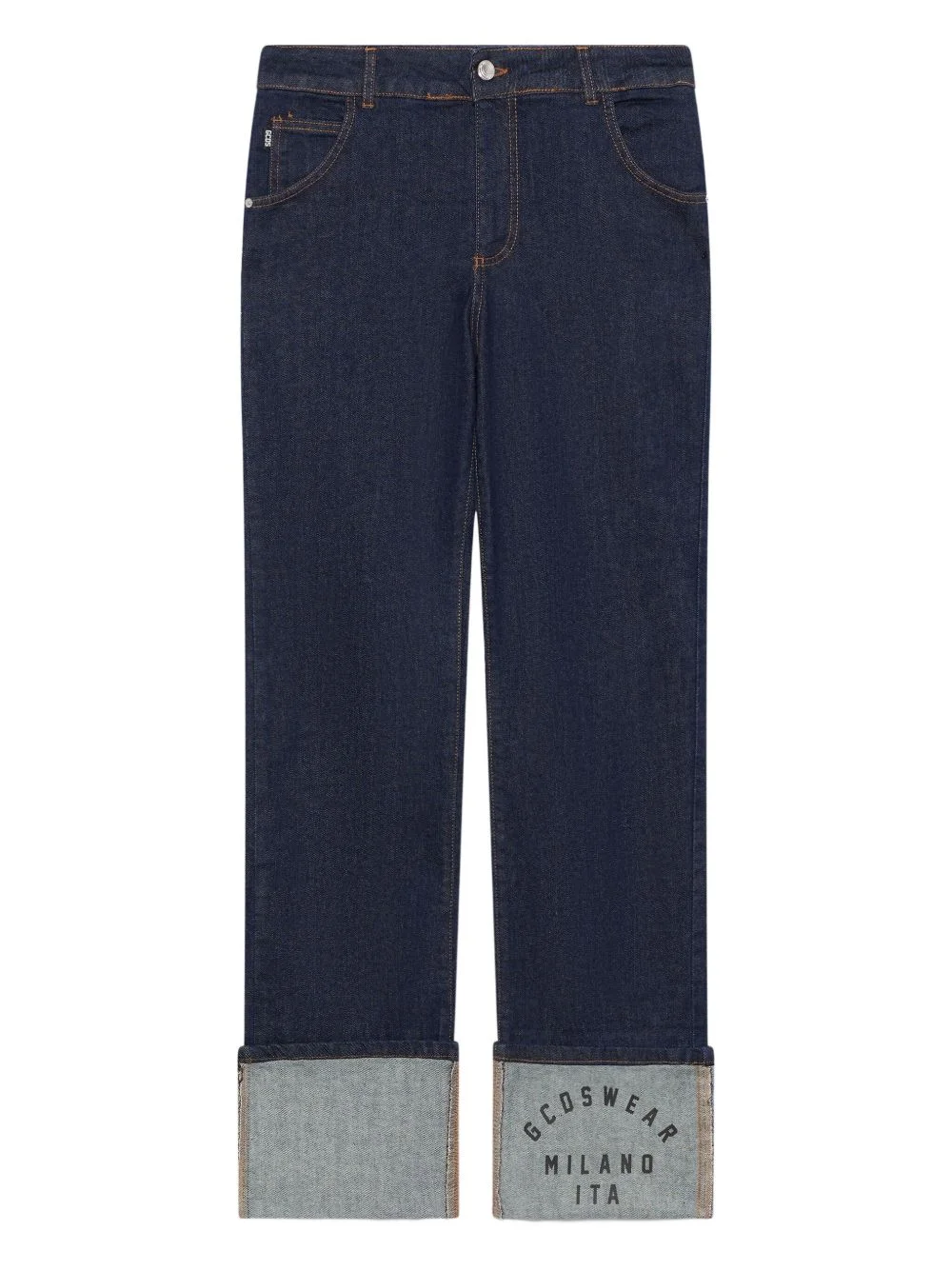 turn-up hem jeans Highlights - Blue - Turn-up hem - Topstitching - Front pockets - Logo print Made in Italy Composition Cotton 98%, Elastane 2%