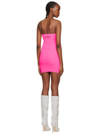 Rib knit recycled nylon dress. · Scoop neck · Cutout at front · Crystal-cut cup-chain shoulder straps · Crystal-cut logo at back Supplier color: Fuchsia