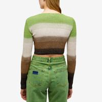 GCDS continues with its line of high fashion streetwear this SS23 season. This Degradé cardigan is made with the rainbow stripes of the season and made to a cropped fit to be perfect for summer. Fastening at the front with the brand’s gold clip - wear it alone for a cheeky look.