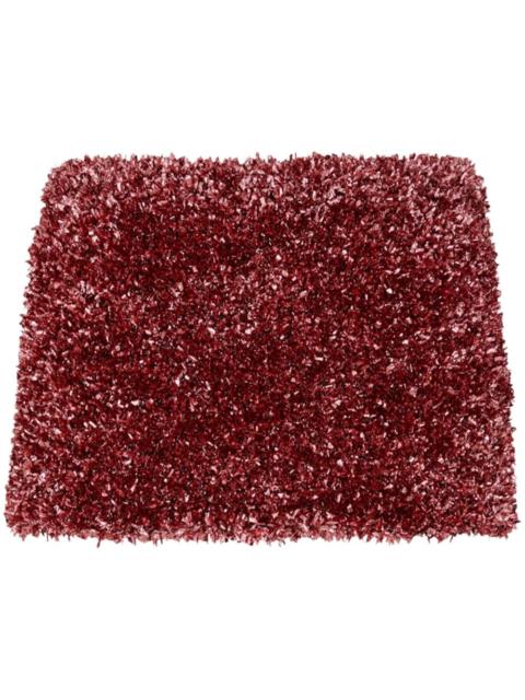 Metallic miniskirt Highlights - Bordeaux red - Metallic effect - Elasticated waistband - Straight leg Made in Italy Composition Polyester 47%, Viscose 34%, Polyamide 19%